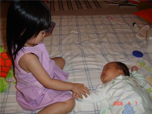 每當姐姐來陪弟弟玩時, Antonio總是會發出很高興的笑聲.
