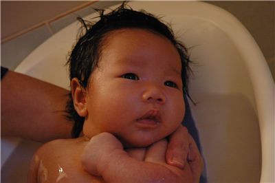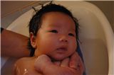 媽咪說我一個月的時候, 洗澡要看心情, 常常都會邊洗邊哭...