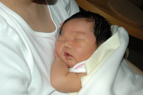 滿月前Felicia常常被自己嚇到, 媽咪都是抱著Felicia睡在肚子上的.