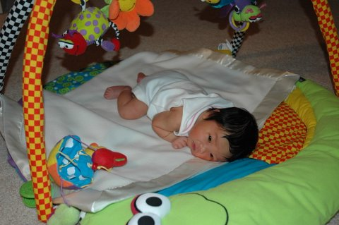 回到家的第一天, 爹地就把我放在體操墊子上, 做運動.
