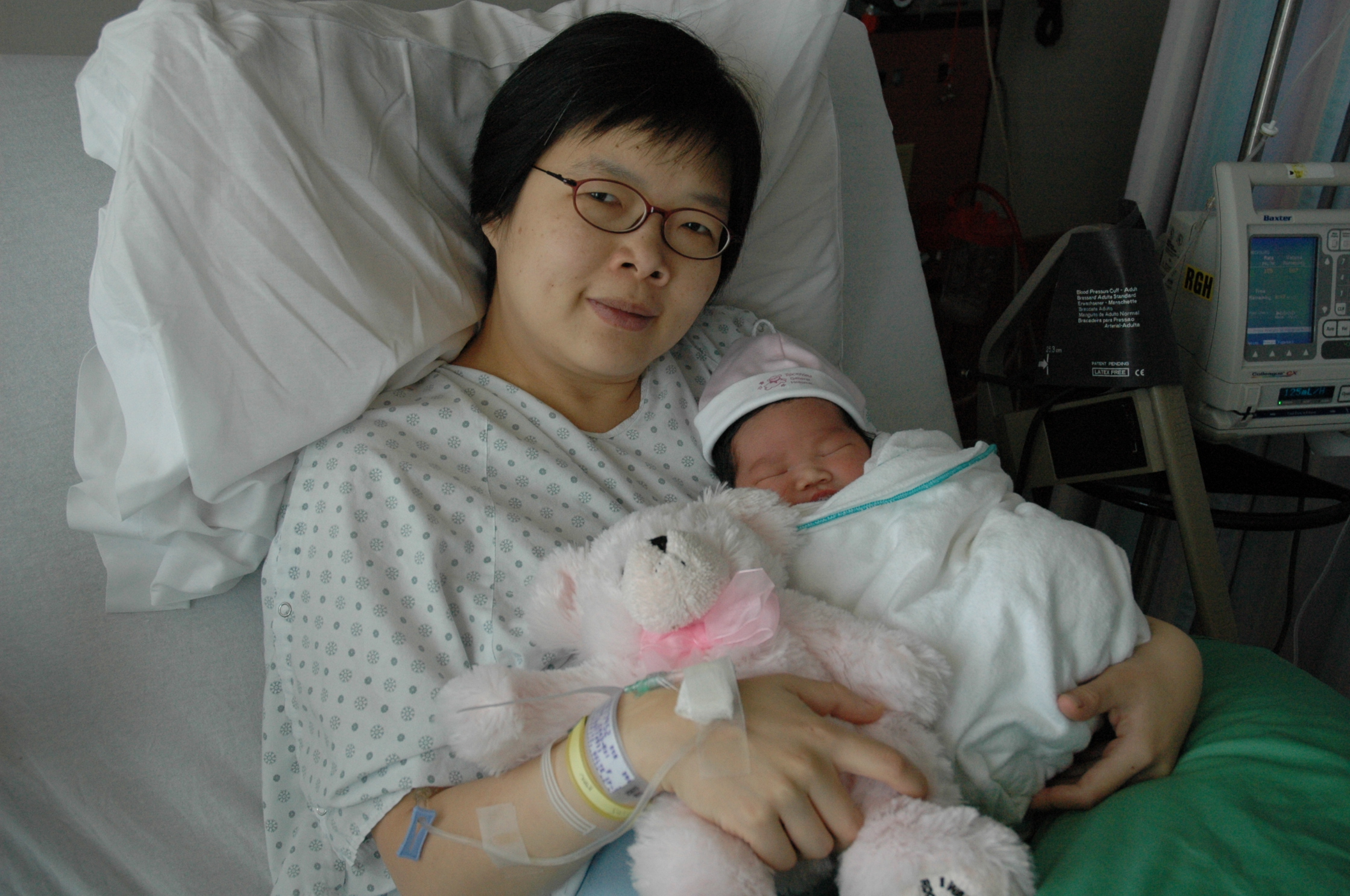 媽咪生完後隔天與Felicia的第一張合照, 楒庭看起來比熊熊還小耶.