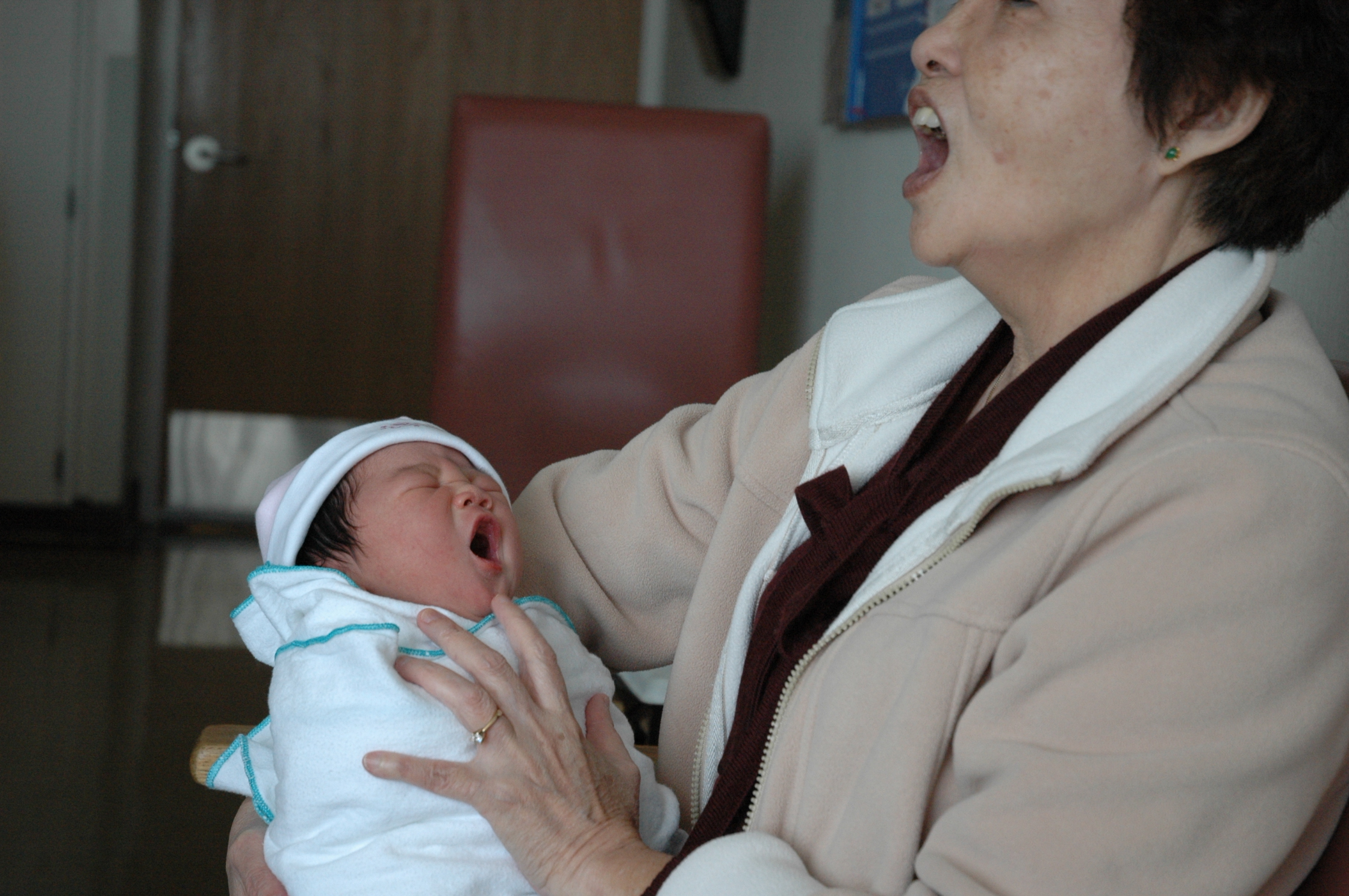和外婆一起打哈欠