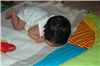 剛回家的第一天, 爸拔將楒庭放在遊戲墊上躺著