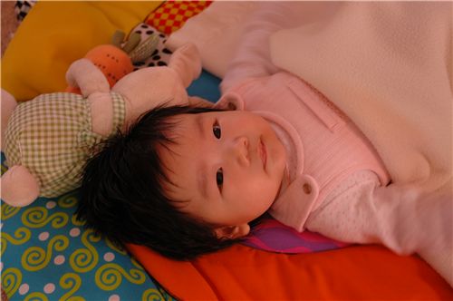 粉粉的衣服穿在Felicia的身上, 看起來一點都不像是個未滿三個月的BABY.