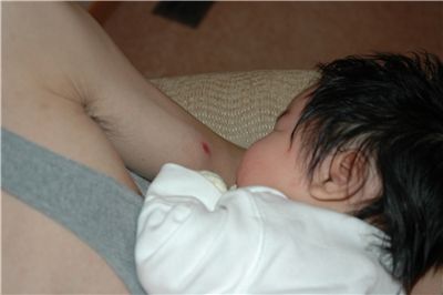 楒庭才吸一下下, 就種了一顆漂亮的草莓, 不過爸拔喊說痛死囉~