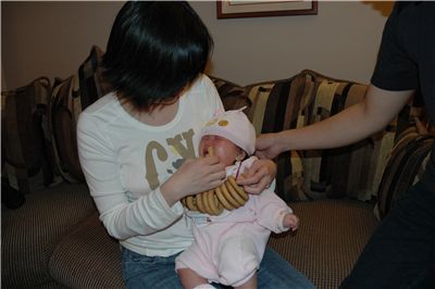 Mommy is taking off my saliva