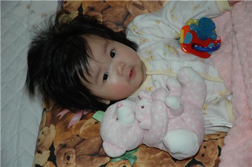 把拔: 「Felicia看把拔這裡, 笑一個!」