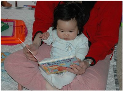 Felicia坐在媽咪的腿上, 聽媽咪說故事.
