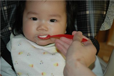 媽咪說我吃的很棒哦, 沒有吃的滿臉滿嘴都是米麩.