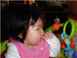 Mommy在後面拍照時, 不小心被Felicia發現了, 看看她不好意思的表情...