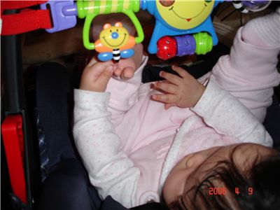 Felicia愈玩愈興奮, 玩到car seat晃的很厲害, 讓媽咪吃的很不放心, 一直盯著看.