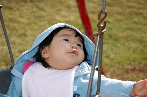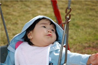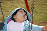Felicia第一次坐盪鞦韆, 居然是放手往後仰看著天空, 一點都不害怕.