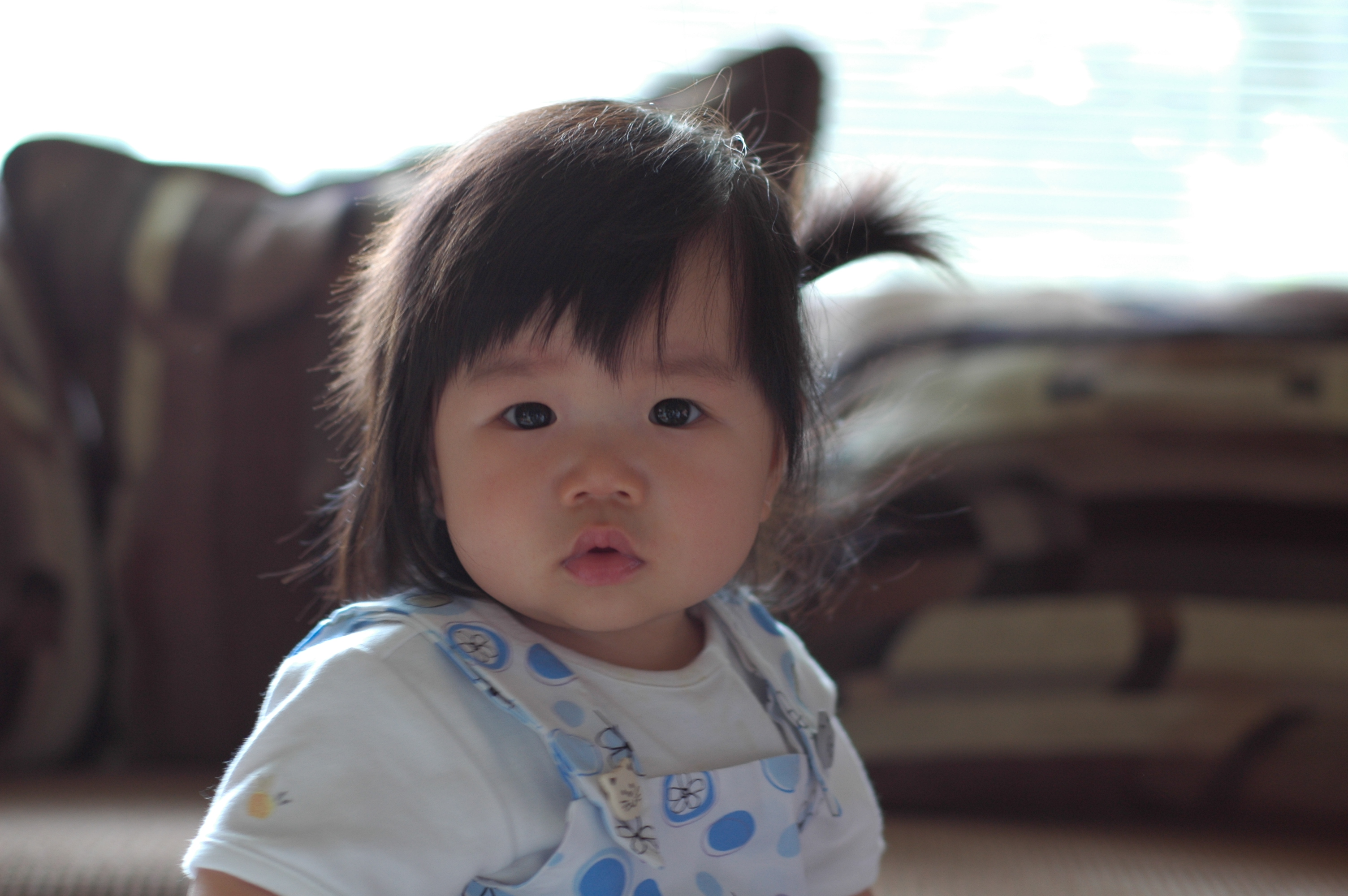 吃完米麩自己玩了一會, 一邊小辮子已經不見了