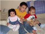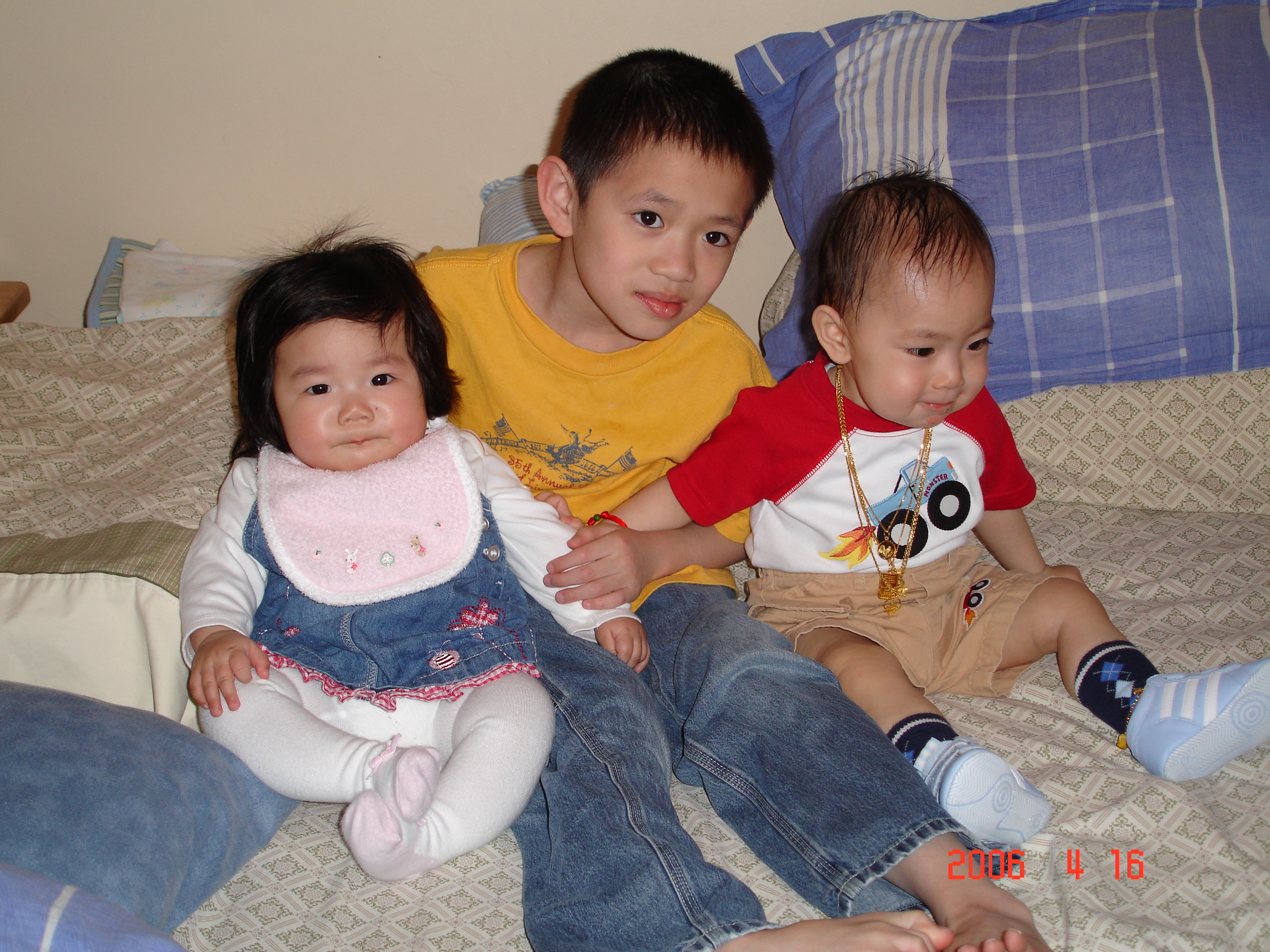 Jonas堂哥, Raymond表哥, 都幫忙扶著還坐不穩的Felicia