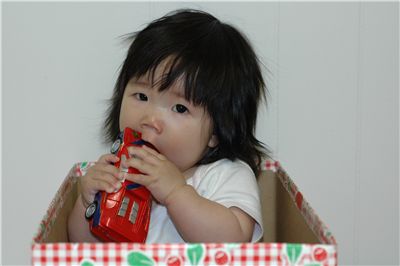 把拔給的車子, Felicia很聰明哦, 只咬輪胎軟軟的部份