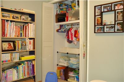 書架上有媽咪的工具書和Felicia的故事書, 右邊是Felicia小時候的照片(她還認得的)