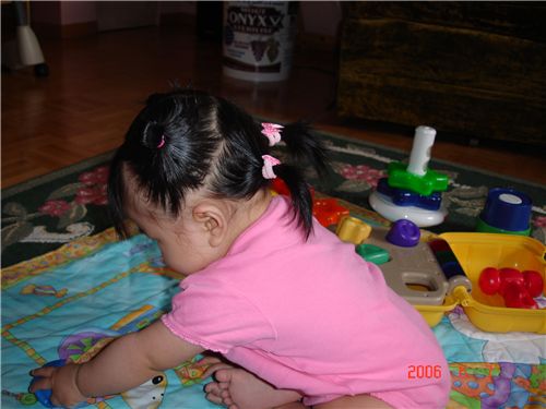 Felicia的頭髮已經過肩了. 注意看她是盤腿在玩哦.