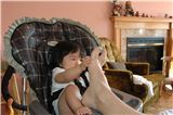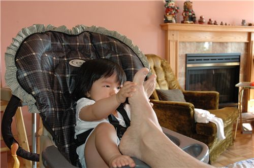 看看Felicia玩把拔的腳時的坐姿, 看來這樣坐才可以抓穩把拔的腳, 不讓它亂跑...