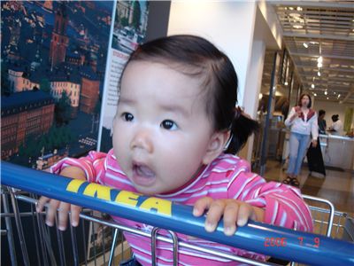Felicia已經準備好去咬推車前面的把手了