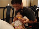 把拔給Felicia一塊香吉士, 自已吸果汁.