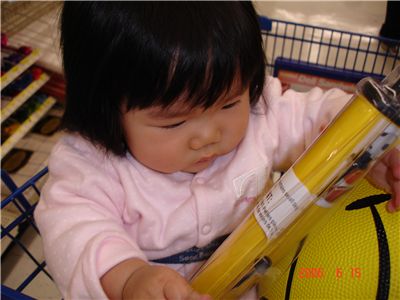 最近Felicia看書時, 會把她的小手指頭指在字上, 有時在字上劃來劃去, 好像在唸書一樣, 也不知看懂沒有...