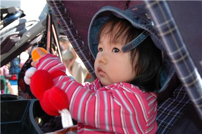 在等表演的同時, Felicia開始玩起她的新玩具.