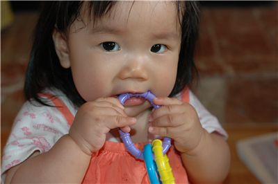 Felicia不啃磨牙手手, 反而喜歡啃那個圓圈圈