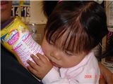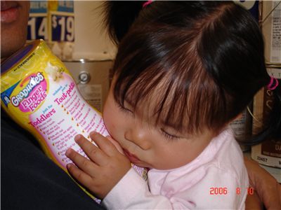 抱著餅乾睡著的Felicia, 睡的很熟餅乾還是抱的緊緊的.