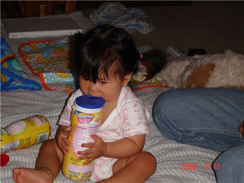 Felicia已經用牙齒把瓶蓋打開了.