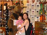 Felicia和Michelle阿姨在Banff的商店裡與大麋鹿照相