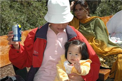 此趟旅行的第一站, 露易絲湖, 梁奶奶抱著Felicia