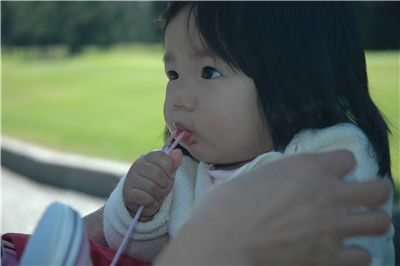 Felicia: "把拔~ 鞋帶拉麵味道不錯耶, 你要不要試試?"