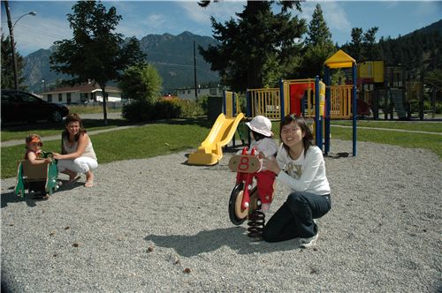 騎腳踏車時, 又在看對面的犀牛了, 那個外國小哥哥, 一直跑來和Felicia玩.
