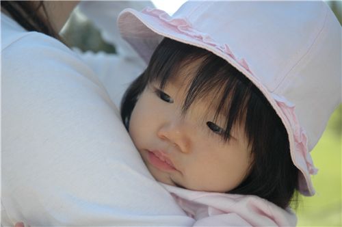 Felicia玩累了, 趴在媽咪身上撒嬌.