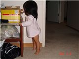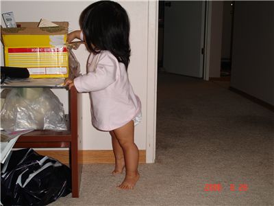 Felicia不夠高, 又對盒子裡的東西充滿好奇, 於是踮著腳尖一直在箱子裡挖寶