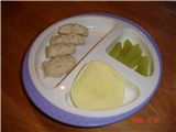 媽咪幫Felicia準備的第一個手扒餐 - 雞肉排, 牛奶蒸蛋黃, 綠色花椰菜