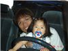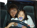 在車上等媽咪收東西的Felicia, 居然開起車來了, 很好玩喔~