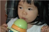 Felicia喜歡自己用吸管水杯喝水