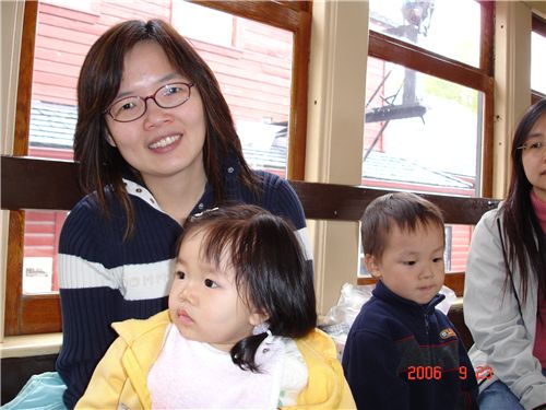 媽咪今天幫我綁了二根鬆鬆的小辮子哦~ 把拔說看起來成熟多了.