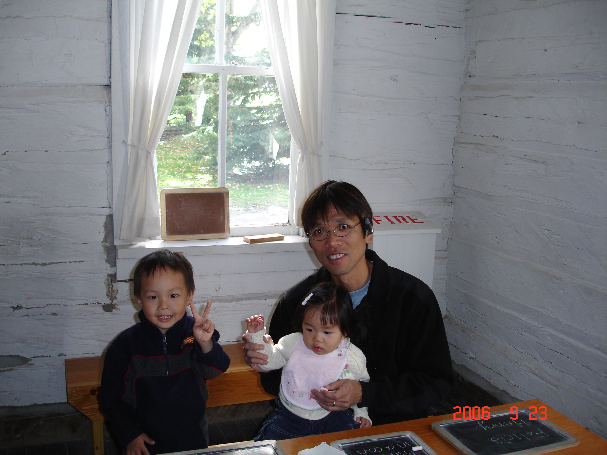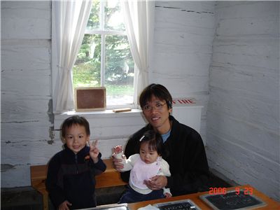 Herny, Felicia坐在以前的小學教室裡, 什麼東西看起來都好小哦