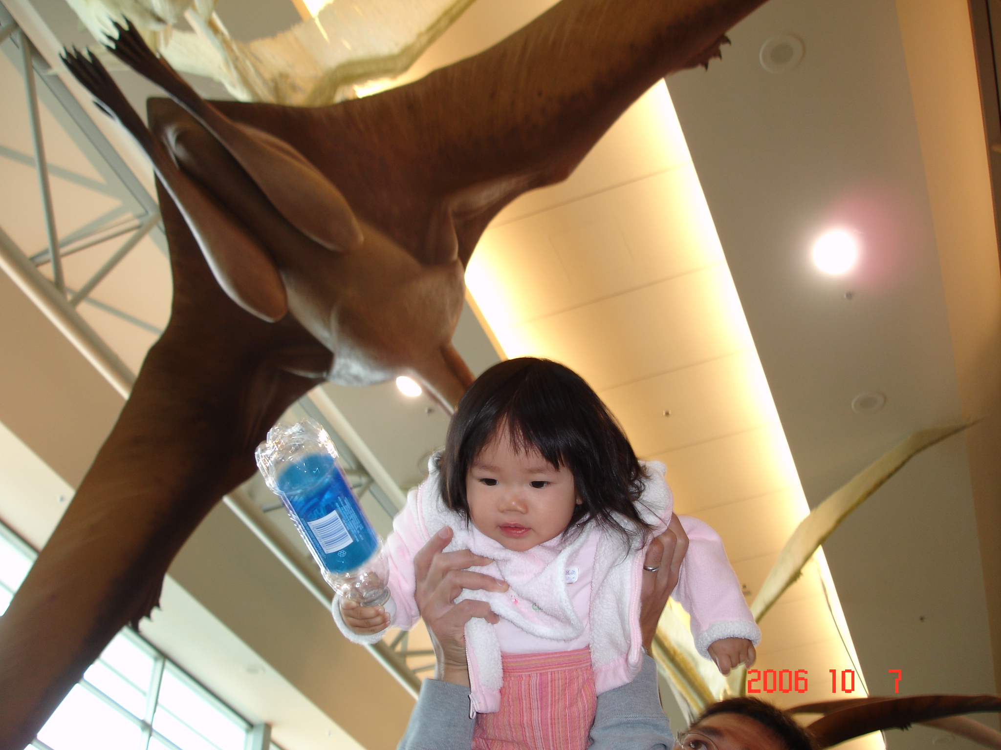 因為Felicia在機場裡一直抬頭看, 我們才發現卡加利的機場裡面有好多恐龍哦~