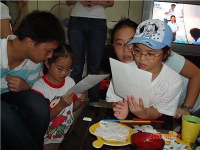 小朋友很認真的挑選刺青貼紙