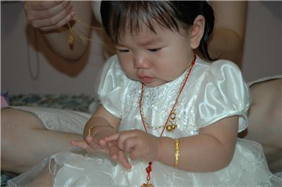 Felicia: "這個就叫金子嗎? 為什麼要戴這麼多哩"