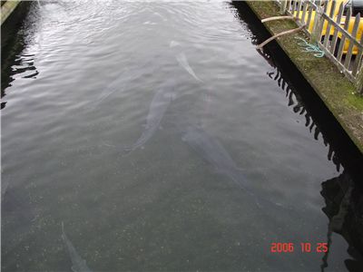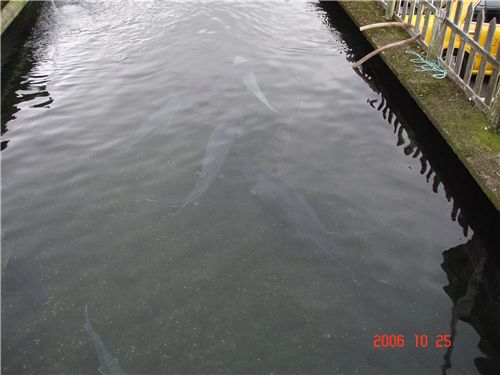 在養殖場裡看到不知名的大魚