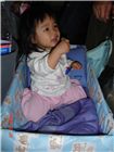 華航空姐給Felicia一個大紙箱當床, Felicia不睡時也可以在裡頭玩, 媽咪覺得是比掛在牆上的床安全多也舒服多了, 不過把拔媽咪的腿卻沒地方放, 一路下來很酸呢.