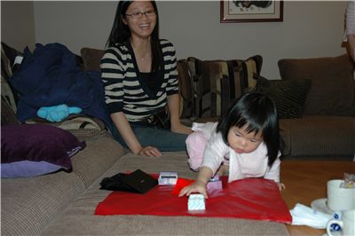 乾爸爸和乾媽媽準備的見面禮, Felicia最喜歡那個珍珠小項鍊.