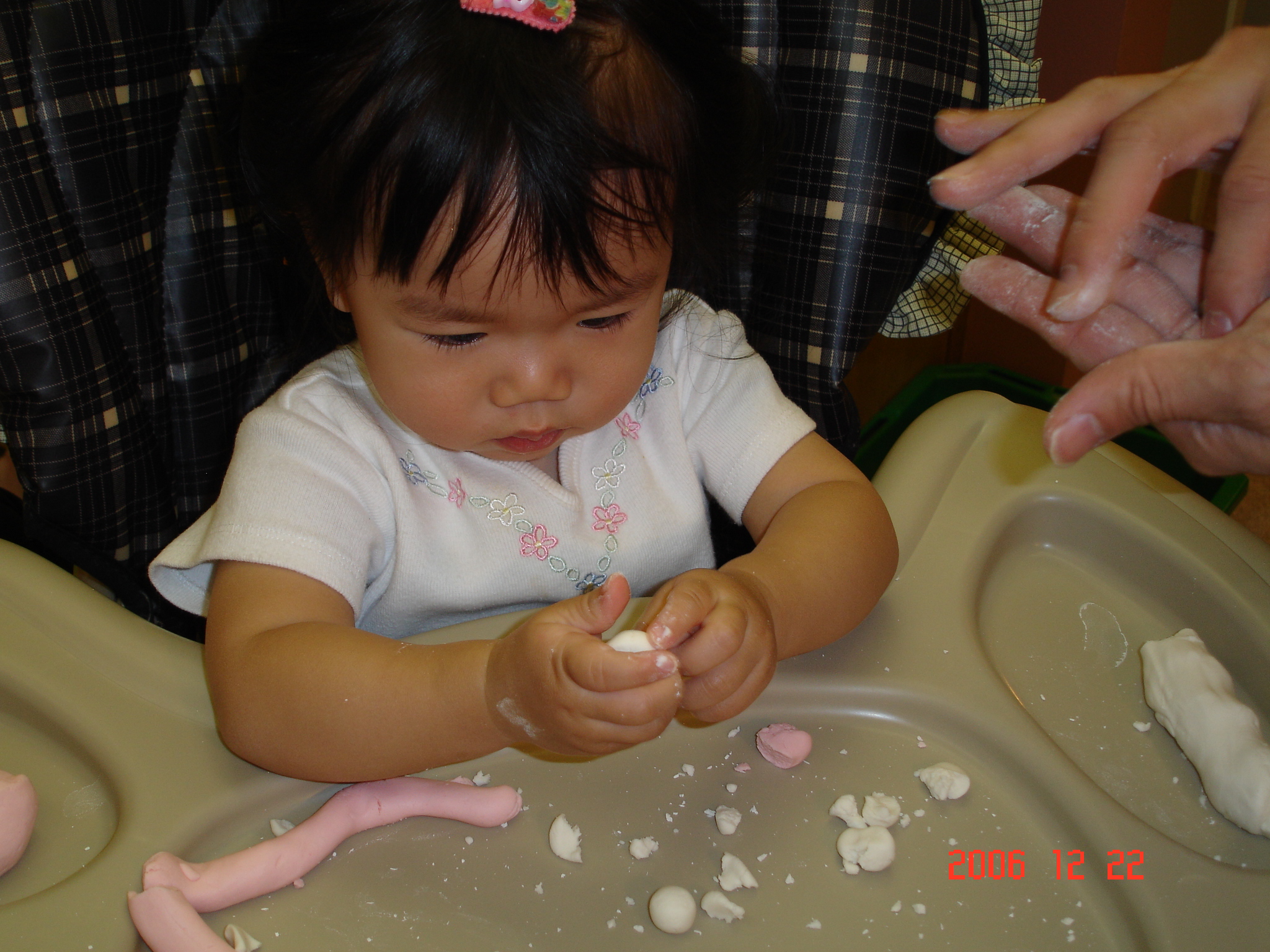 Felicia將把拔搓好的湯圓, 壓扁壓碎, 搞破壞.