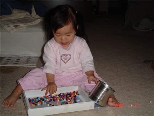 哇~ 全部倒出來了, 有幾顆落跑到腳邊去囉.
