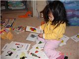 Felicia很喜歡玩英文單字卡, 她已經知道卡片的正面與反面了, 收的時候她會把它全部衣同一個方向收起來.