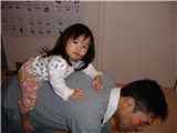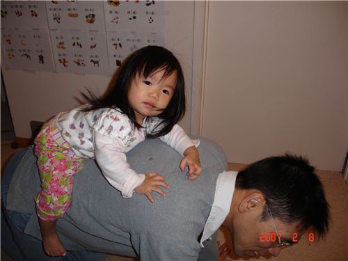 Felicia對於騎在"把拔大馬"身上, 好像沒有像在"媽咪小馬"身上來的自在些, 不太敢抬頭.